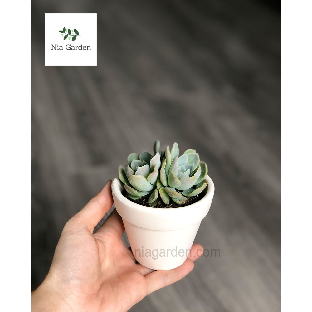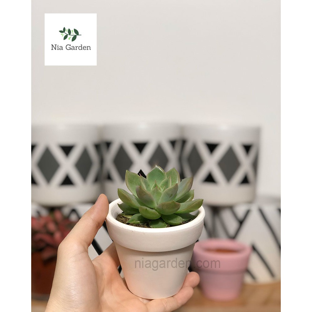 Giới thiệu Chậu đất nung trồng sen đá xương rồng gờ cao trắng nhỏ mini Nia Garden N1