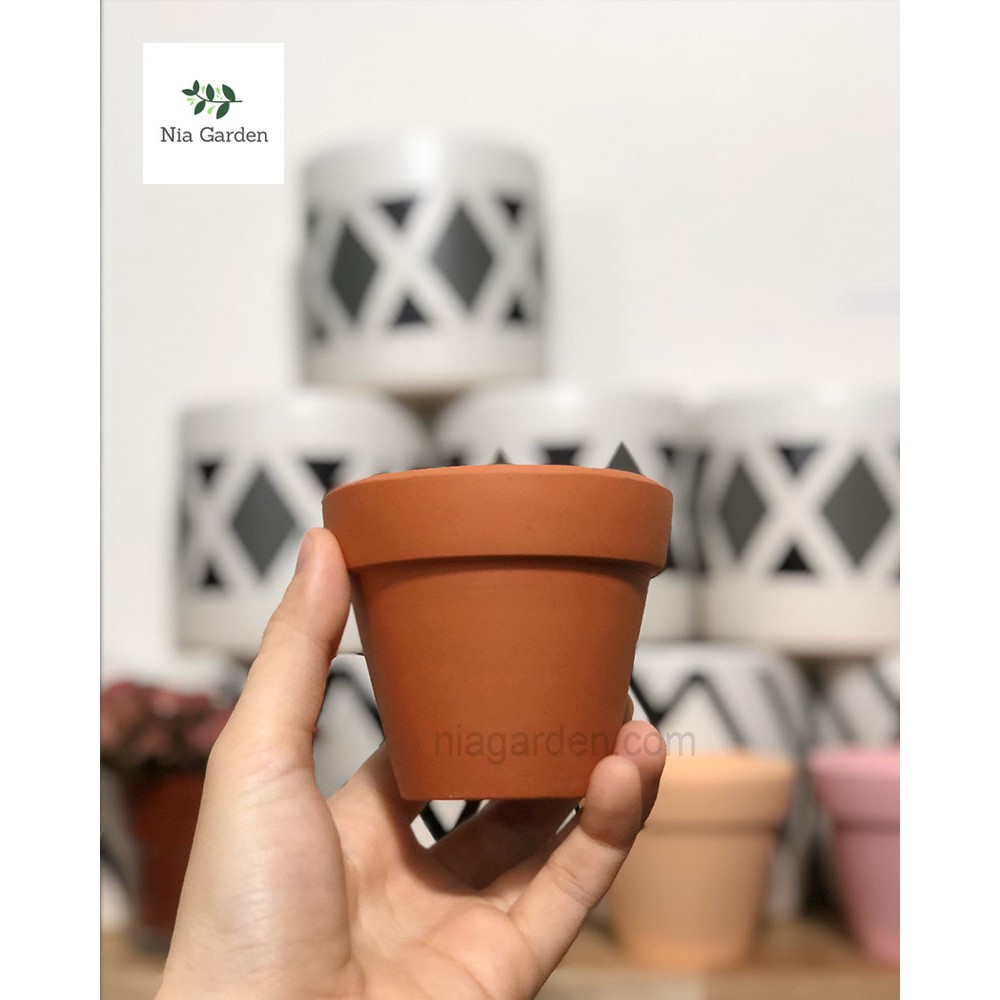 Chậu đất nung trồng sen đá xương rồng gờ cao nâu nhỏ 7.5 x 7.5cm Nia Garden N3