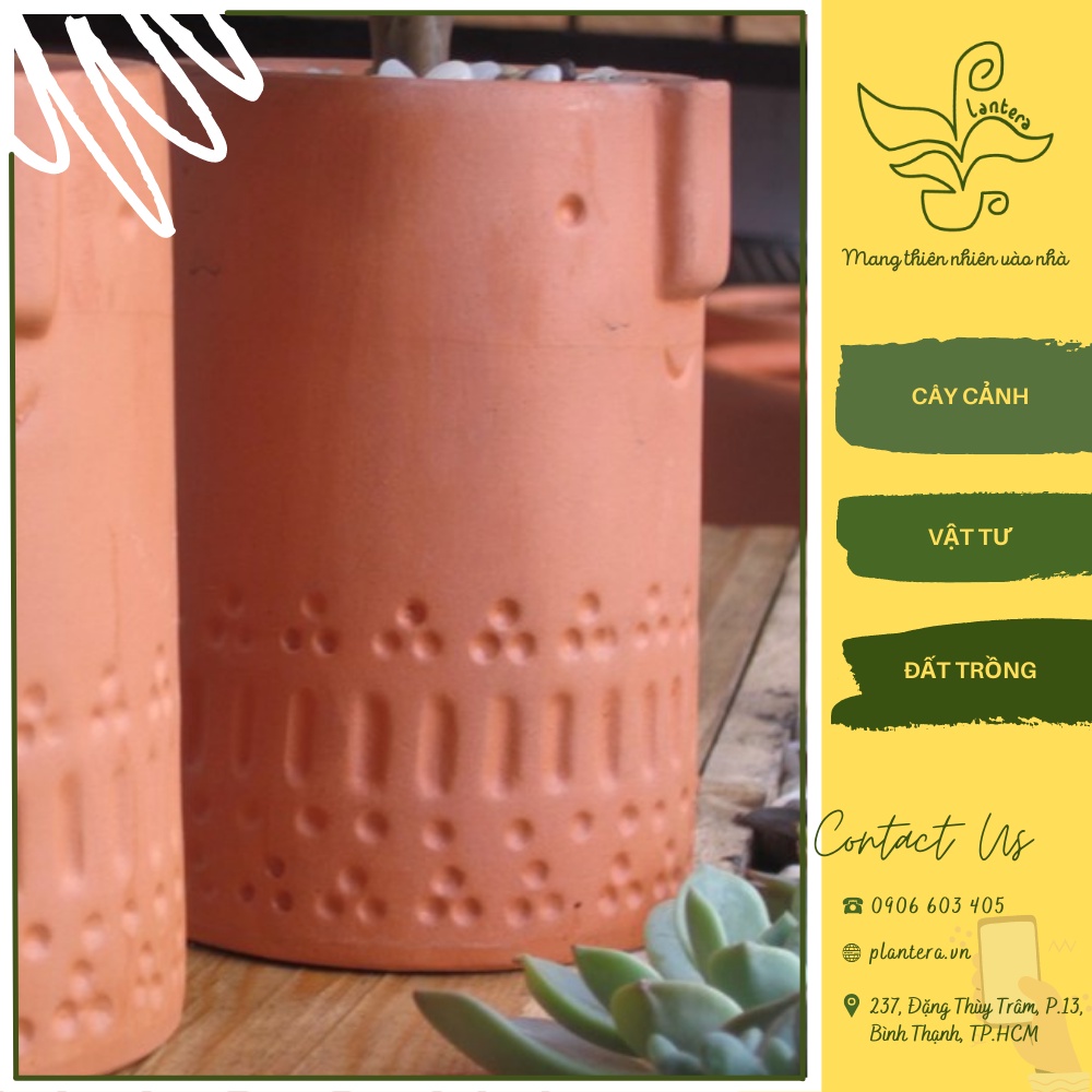 Chậu Đất Nung Trụ Mặt Cười 10X10X15Cm - Khay Chậu - Chậu Đất Nung - Chậu Đất Nung Decor Đặc Biệt