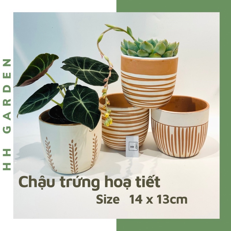 Nhà cửa & Đời sống > Làm vườn > Chậu cây || Chậu đất nung Trứng hoạ tiết, Chậu Wax vintage, Size 14x13cm Terracotta potsCòn hàng