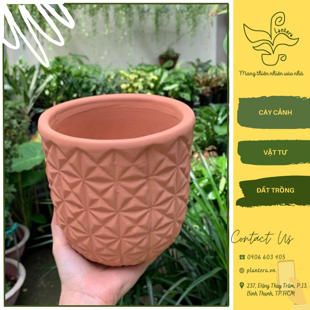 Chậu cây làm bằng đất nung nhỏ nhắn xinh xắn thích hợp trồng sen đá xương rồng tiểu cảnh hoặc các loại cây khácChậu được làm từ chất liệu đất nung, có khả năng hút nước và thoát nước tốt, giúp cây không bị úng nước.