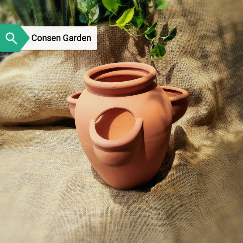 CHẬU Đất Nung Túi 3 LỗKích thước: Cao 30cm, Bề Rộng 32cm. Miệng trồng chính 16cm, miệng trồng phụ: 9cm.