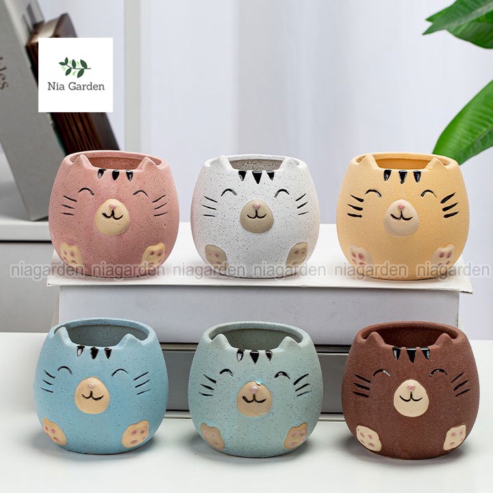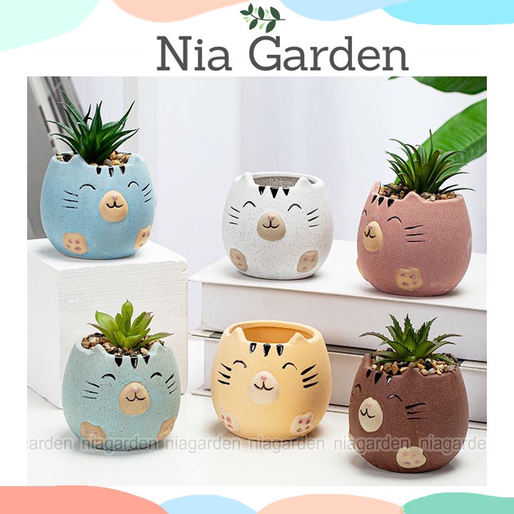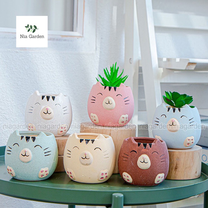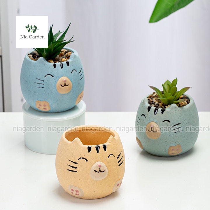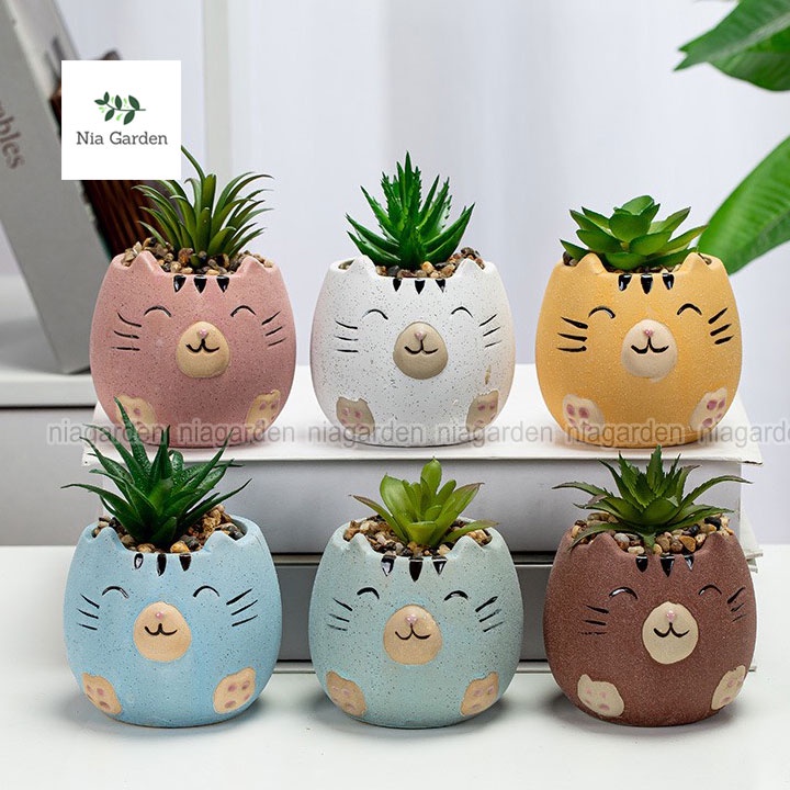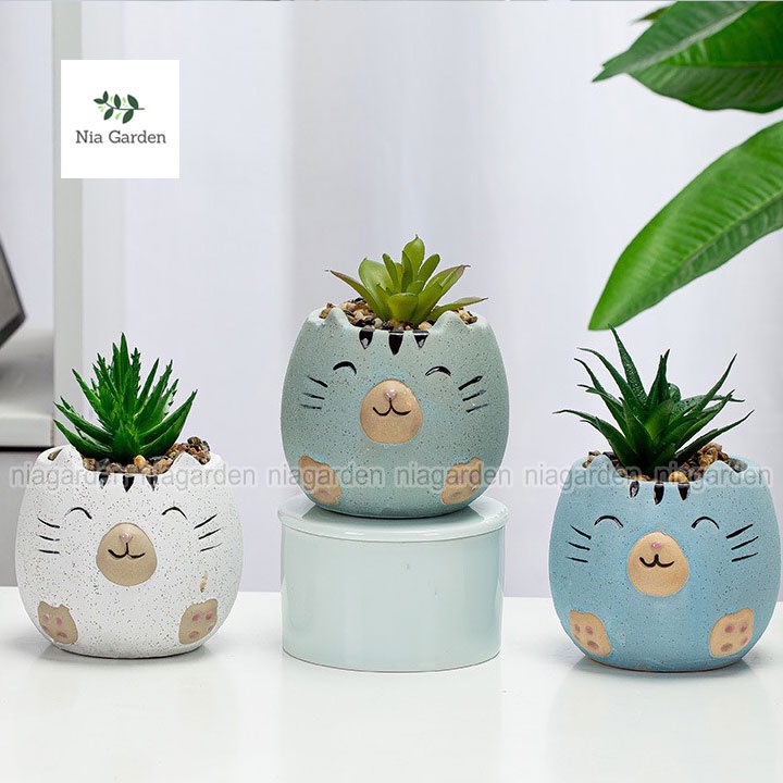 Nhà cửa & Đời sống > Làm vườn > Chậu cây || Chậu để bàn mèo trồng sen đá mini xương rồng cây để bàn - N4Còn hàng