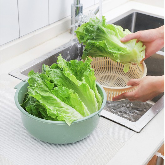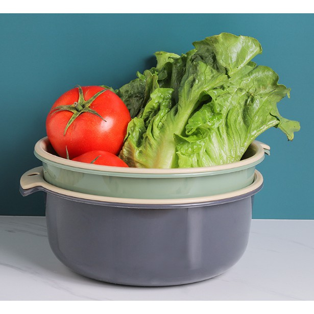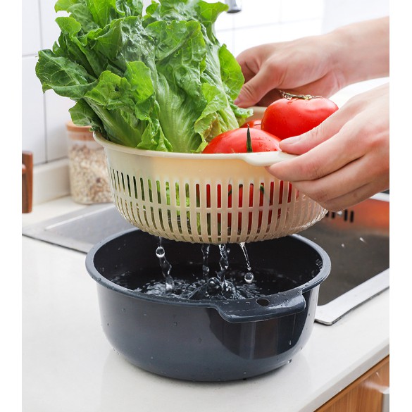 Nhà cửa & Đời sống > Dụng cụ chăm sóc nhà cửa > Chậu, xô & gáo nước || Chậu đôi tích hợp rổ lưới rửa rau củ quả, trái cây tiện dụng cho nhà bếpCòn hàng