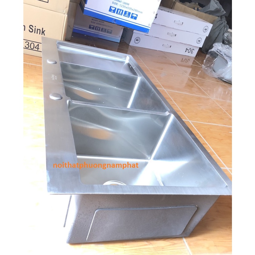 -Chậu làm từ inox 304 sẽ sáng bóng, dày, bề ngoài chậu được sơn 1 lớp cách ồn nên khi rửa bán đĩa sẽ không nghe tiếng kêu ổn từ nước xả hay tiếng bát đĩa va vào thành chậu.