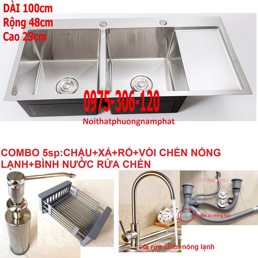 Combo Chậu Rửa Chén Bát INOX SUS 304 N1 10048 NA.GRAND và Vòi Rửa Chén Nóng Lạnh Inox 304,Rổ Thực Phẩm,Bình rửa chén+Bộ Xả chậuKHÁCH LƯU Ý: TẤT CẢ CÁC SẢN PHẨM CỦA CÔNG TY ĐỀU KHẮC THƯƠNG HIỆU TRÊN SẢN PHẨM, VÀ LUÔN CÓ HÌNH THẬT