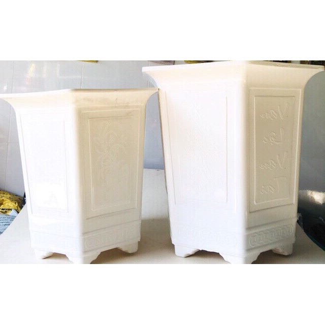 [Chậu Đúc Siêu Bền] Chậu vuông Lục Giác trắng, chậu nhựa gốc giác - Chậu lớn Siêu chắc chắn