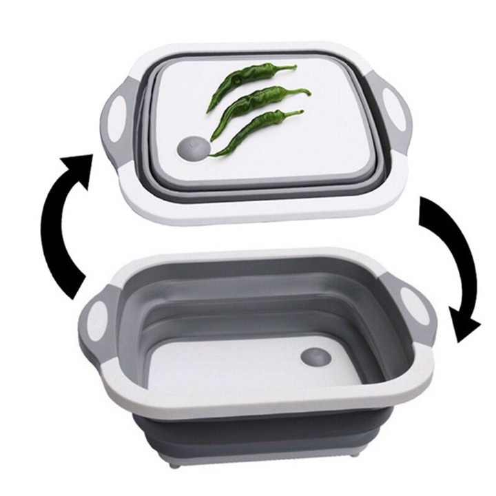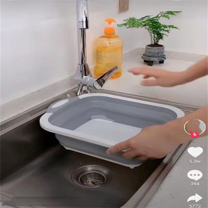 Chậu gấp gọn 3 In 1 Kiêm Chậu Rửa, Rổ Đa Năng, Thớt Siêu Tiện Dụng sạch sẽ nhiều công dụng