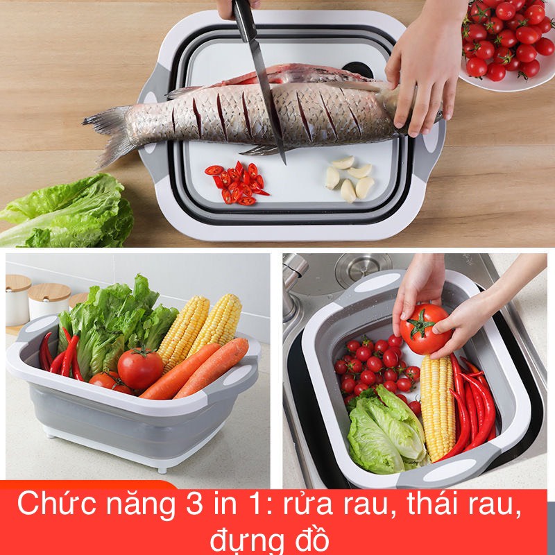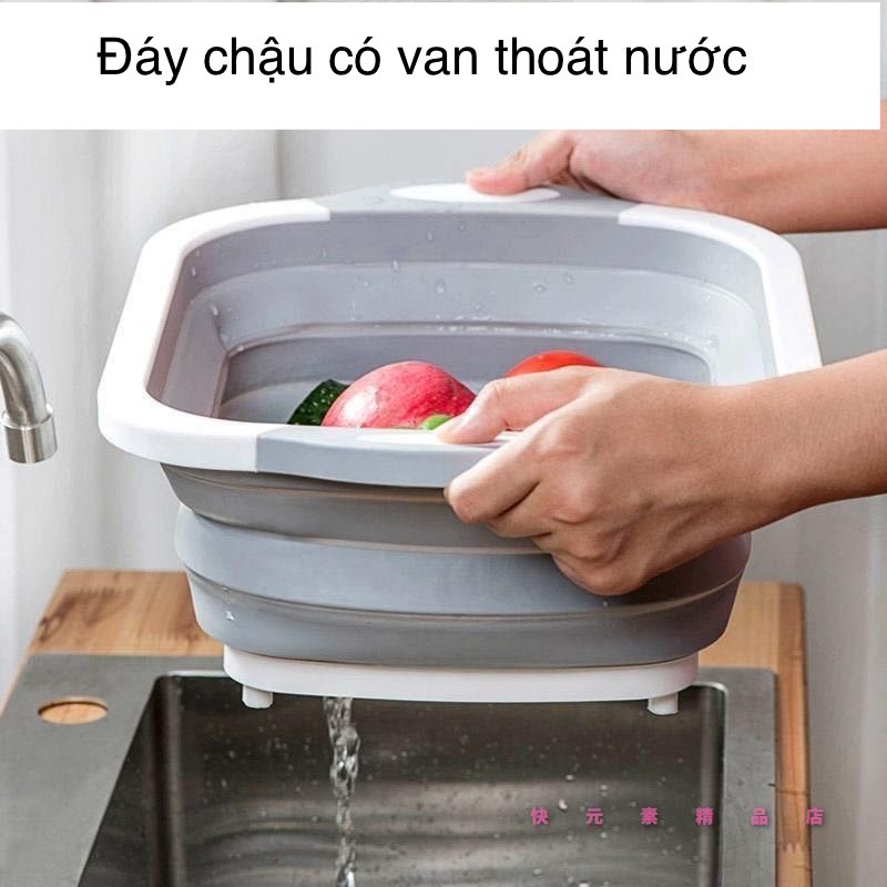 Chậu gấp gọn 3 in 1 siêu tiện lợi có thể rửa rau, thái rau, đựng đồ có van thoát nước