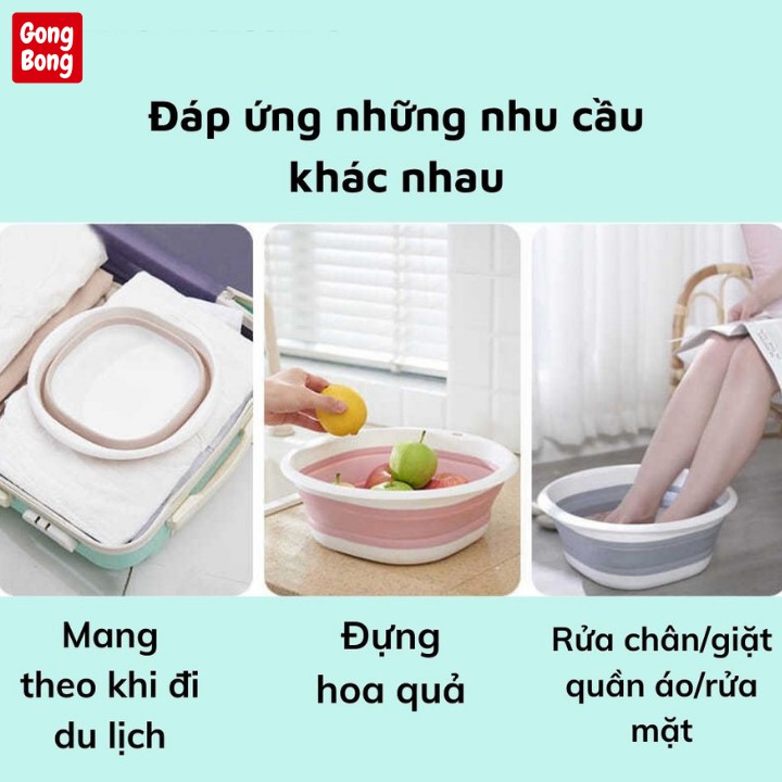Chậu gấp gọn đa năng tiết kiệm không gian thau rửa mặt du lịch tiện lợi chất liệu nhựa slicon Gong Bong storeVới ưu điểm gấp gọn, sản phẩm thích hợp mang theo khi đi du lịch, dã ngoại, dùng trong bệnh viện, trường học, công sở, sinh viên nội trú...