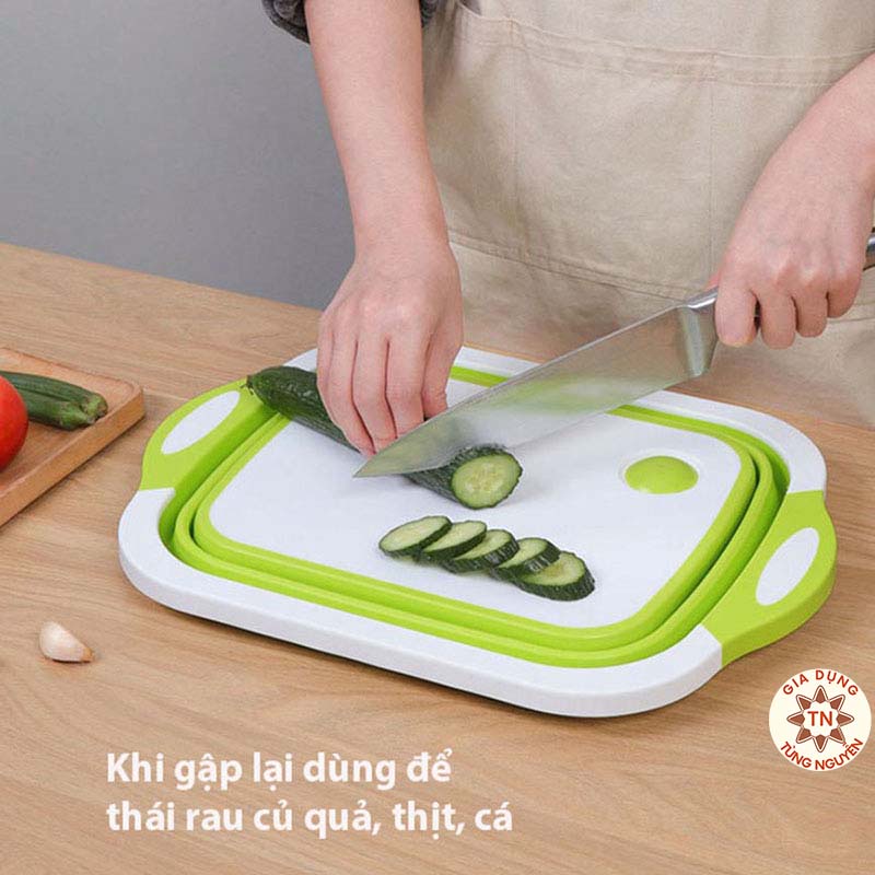 - THỚT: gập chậu lại để làm thớt với bề mặt nhám chống trơn trượt an toàn, thông minh, thuận tiện cắt và băm thực phẩm, ngăn ngừa thương tích.