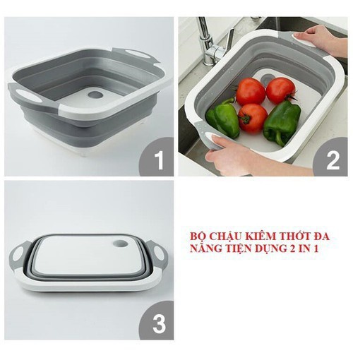 Bộ chậu gấp gọn kèm thớt đa năng 88011 ship siêu tốc88