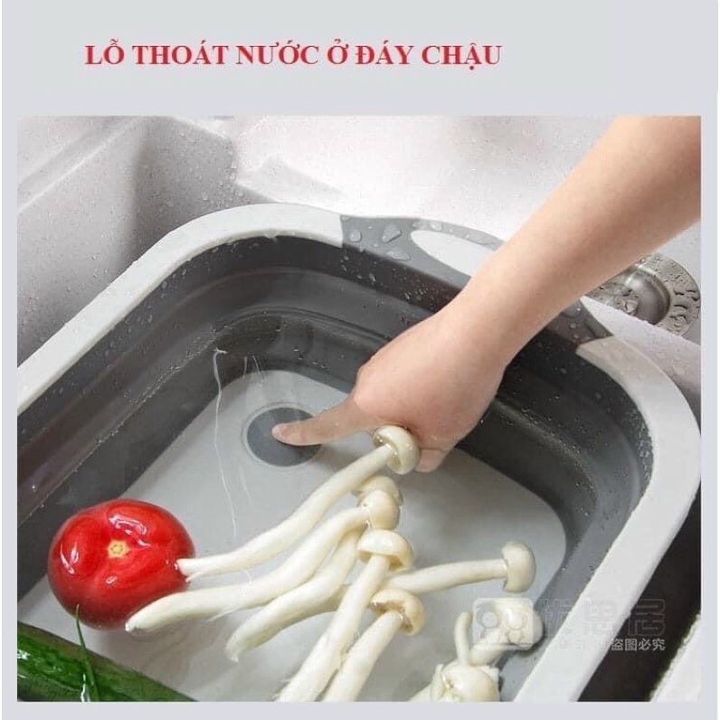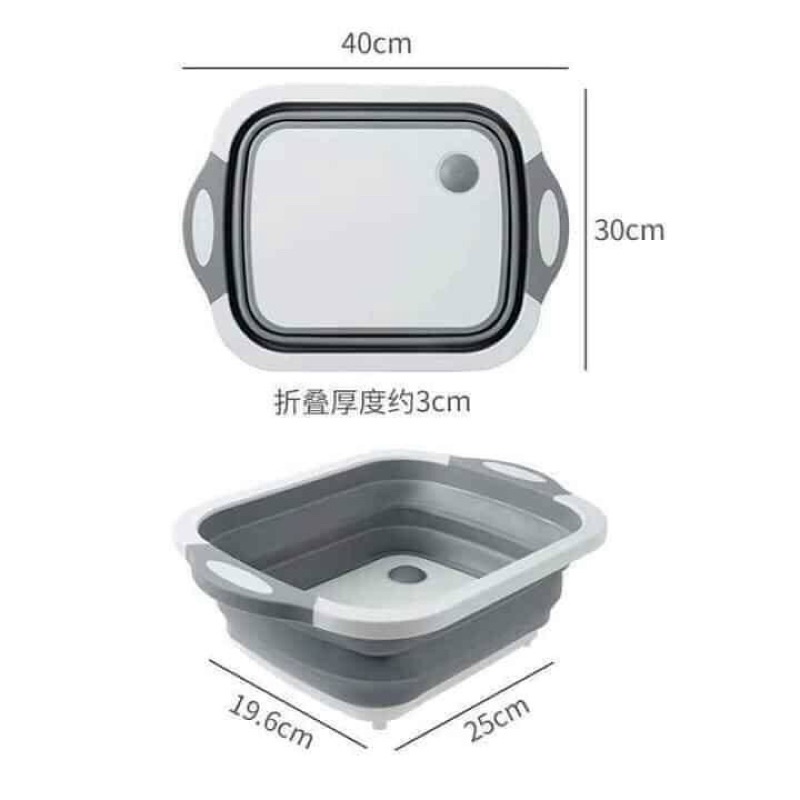 CHẬU GẤP GỌN KÈM THỚT.✅Kích thước: 40*30*13cm, gấp gọn lại là 40*30*3cm.