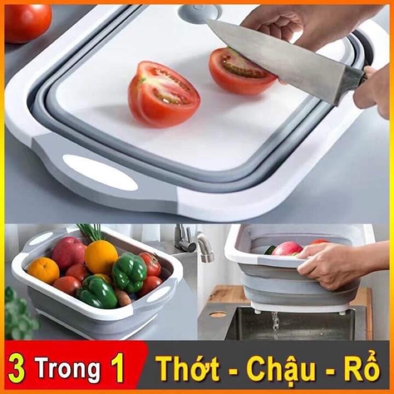 CHẬU GẤP GỌN KÈM THỚT ⚡𝑭𝑹𝑬𝑬 𝑺𝑯𝑰𝑷⚡RỔ ĐỰNG ĐA NĂNG 3 IN 1 TIỆN DỤNG