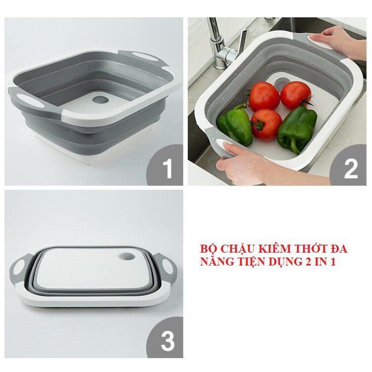 chậu gấp gọn kèm thớt tiện dụng 2 in 1