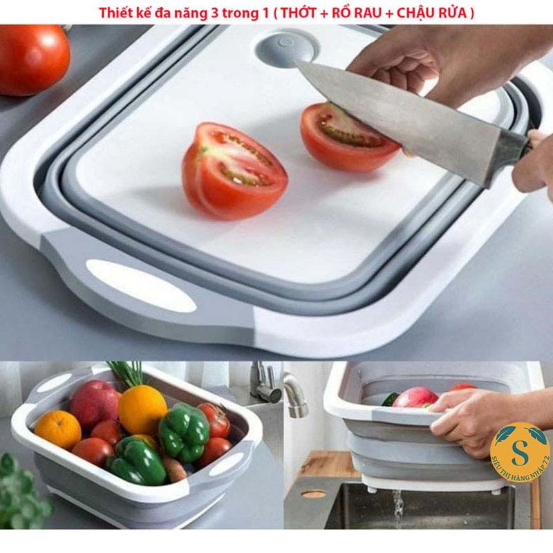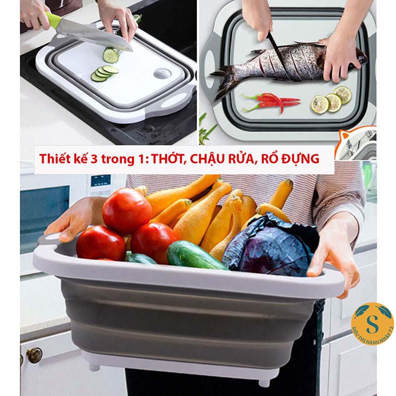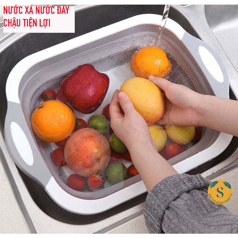 Chậu gấp gọn kiêm Thớt Nhựa Đa Năng 3 In 1 Kiêm Chậu Rửa, Rổ Đa Năng, Thớt Siêu Tiện Dụng [CHẬU THỚT]