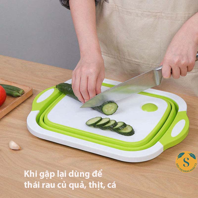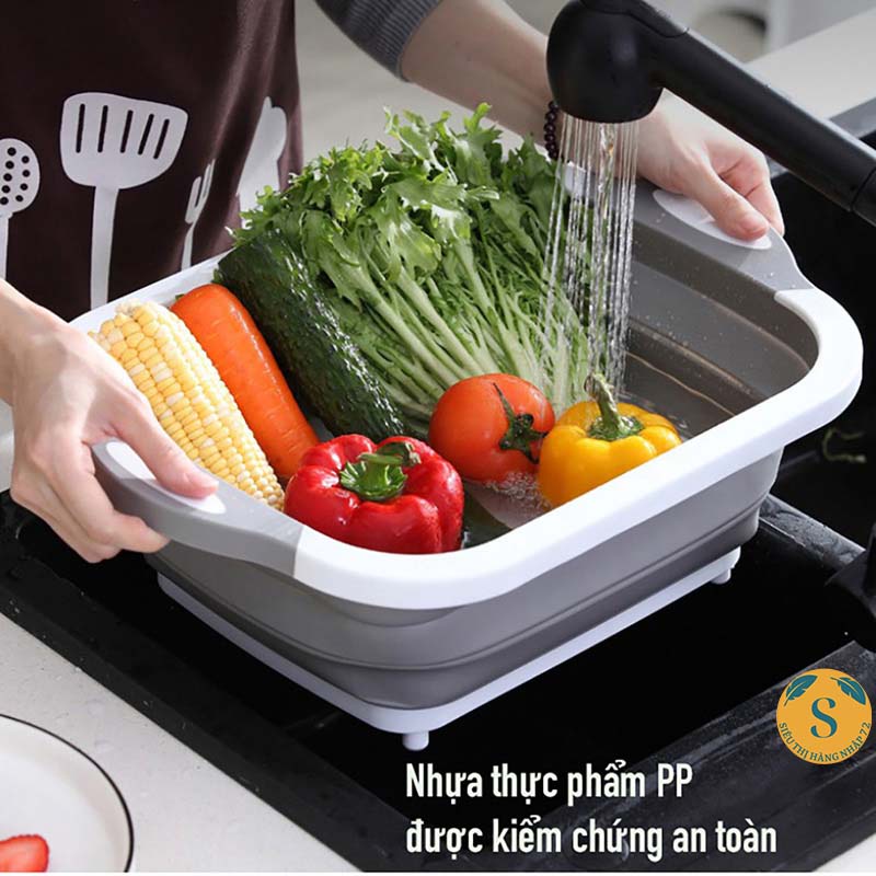 - Công dụng: Chậu rửa rau và có thể gấp gọn để làm thớt thái hoặc băm.