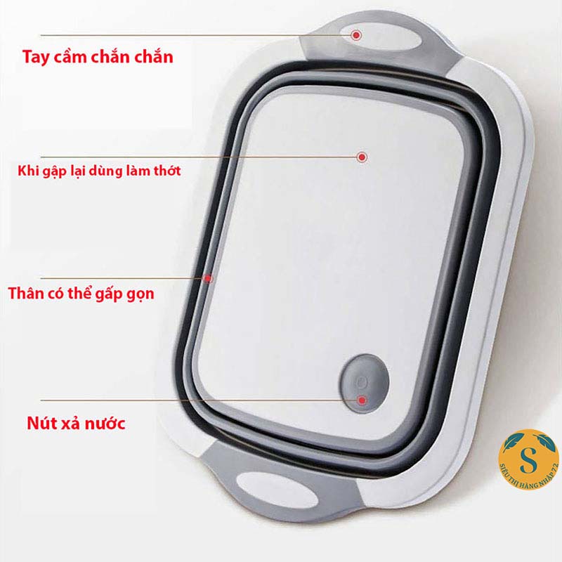 - Sản phẩm hướng tới một xu hướng gọn nhẹ và đa dụng cho căn bếp của bạn. Một chiếc chậu rửa gấp gọn hay một cái thớt nhựa có thể biến thành chậu rửa. Đây là một sản phẩm vô cùng tiện lợi và đa năng cho các chị em nội trợ. Sản phẩm được làm bằng nhựa và cao su cao cấp an toàn cho sức khỏe người sử dụng. Có độ bền cao.