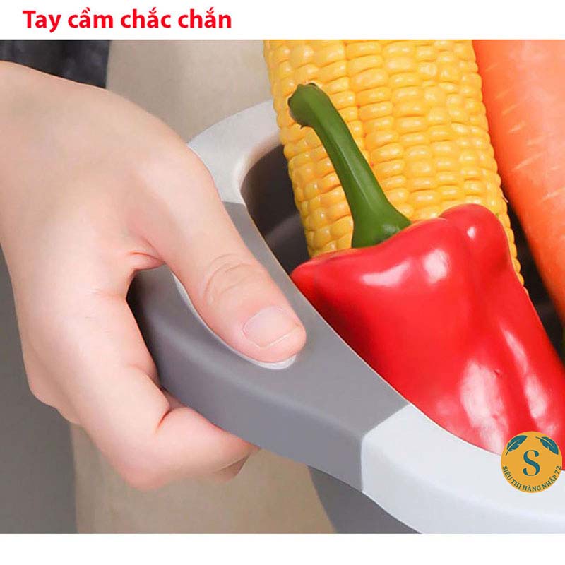 - THỚT: gập chậu lại để làm thớt với bề mặt nhám chống trơn trượt an toàn, thông minh, thuận tiện cắt và băm thực phẩm, ngăn ngừa thương tích.