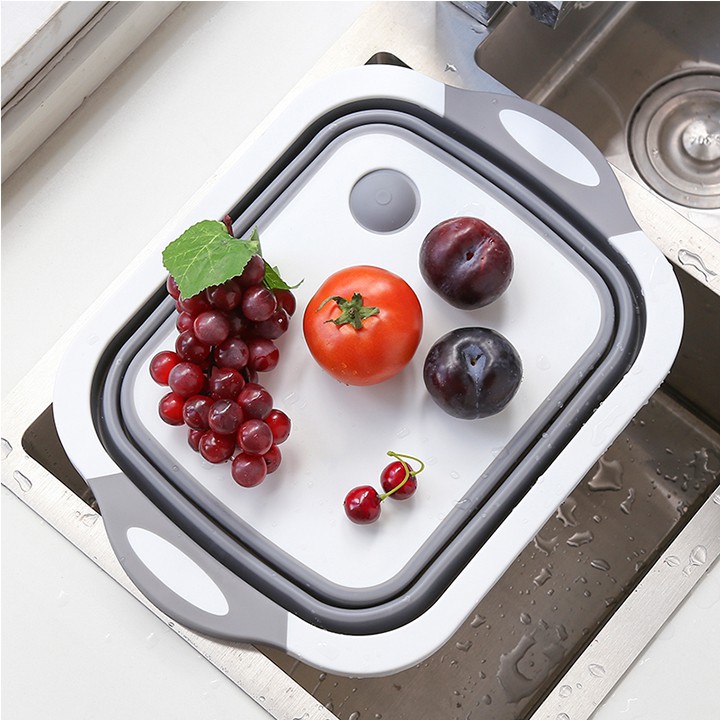 Chậu Gấp Gọn Kiêm Thớt Và Rổ Đựng 3 IN 1 Đa Năng Tiện Dụng Tiết Kiệm Diện Tích Cho Không Gian Bếp