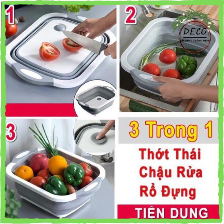 Chậu Gấp Gọn Kiêm Thớt Và Rổ Đựng ✅FREESHIP✅ - Thớt 3 In 1 Gấp Gọn, Đa Năng,Chậu Thông Minh - BE DECO