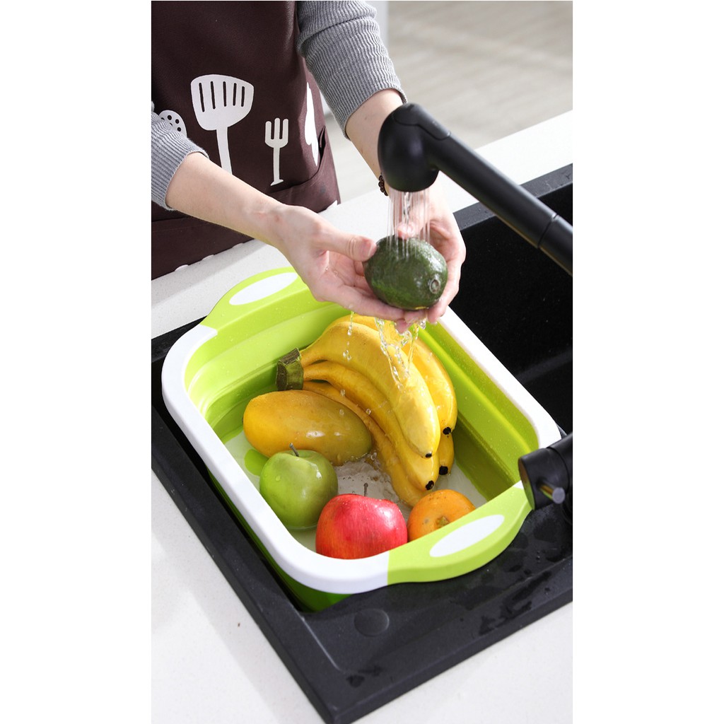 Chậu gấp gọn kiêm thớt và rổ đựng đa năng loại LỚN 3 trong 1
