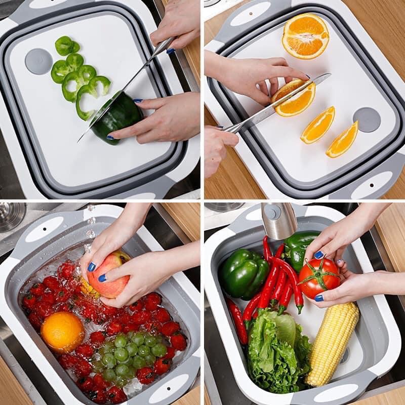 Chậu Gấp Gọn Kiêm Thớt Và Rổ Đựng Đa Năng Loại LỚN 3in1 Đa Năng Tiện Dụng❗️60k