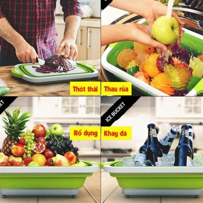 Với chất liệu nhựa cứng PP và silicol dẻo dai chỉ cần kéo tuột lên chiếc thớt thái chặt đồ của b sẽ thành chiếc chậu rửa, và 1 chiếc rổ đựng đồ tiện lợi