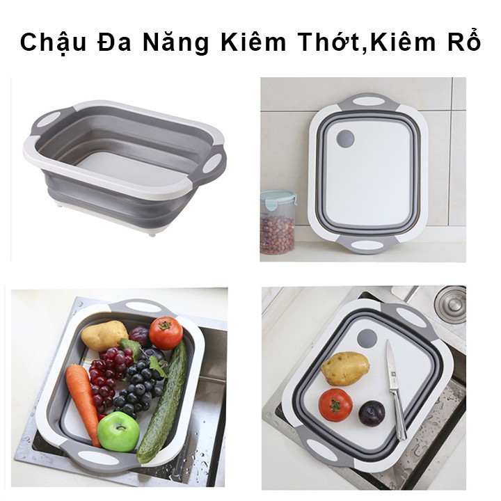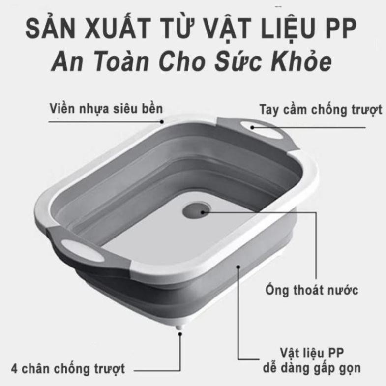 Chậu Gấp Gọn Kiêm Thớt Và Rổ Đựng Đa Năng 3 in1 Đa Năng Tiện Dụng - HUSO