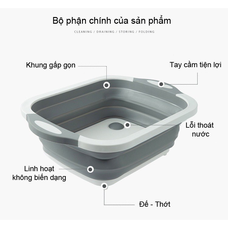 Chậu Gấp Gọn Kiêm Thớt Và Rổ Đựng Đa Năng 3 in1 Đa Năng Tiện Dụng - HUSOĐẶC ĐIỂM NỔI BẬT: