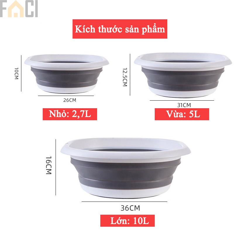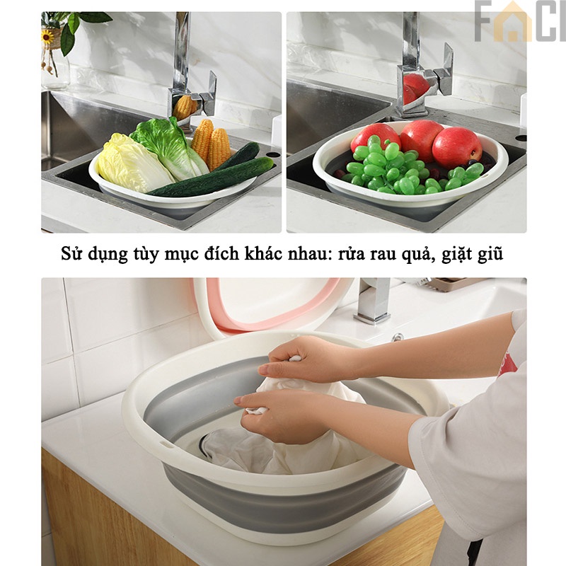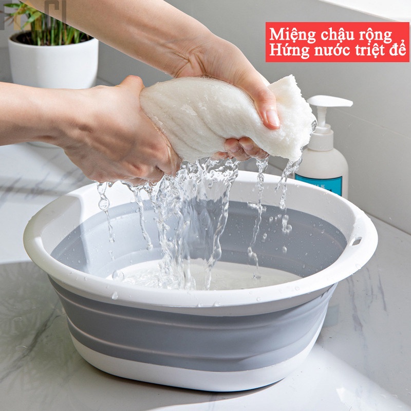 Chậu gấp gọn silicon thau nhựa đồ dùng nhà bếp đa năng tiện lợi an toàn cho bé tiết kiệm không gian