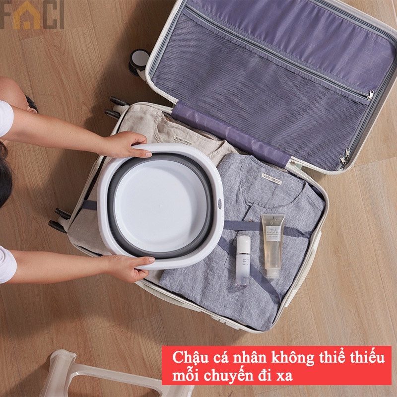 - Thích hợp đi du lịch xa cùng gia đình người thân, dùng chậu để làm chậu rửa mặt, chậu rửa bát rất tiện lợi