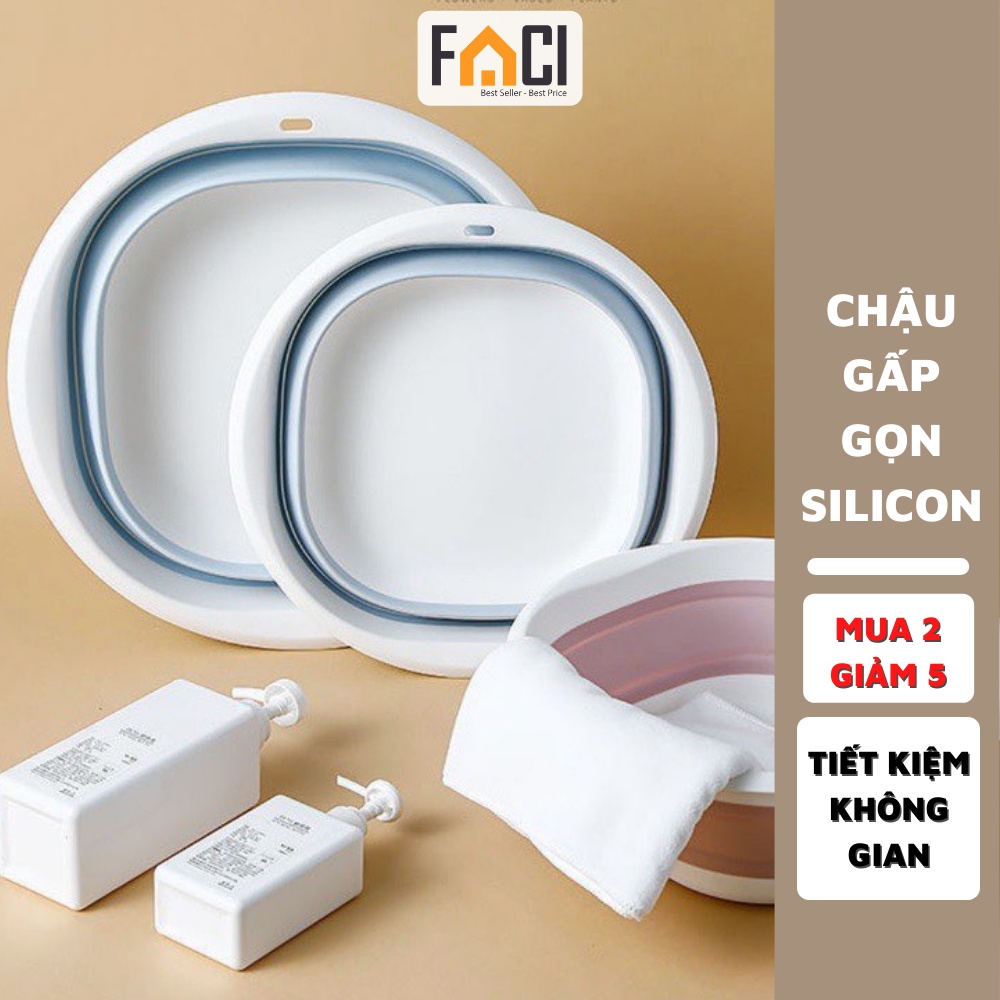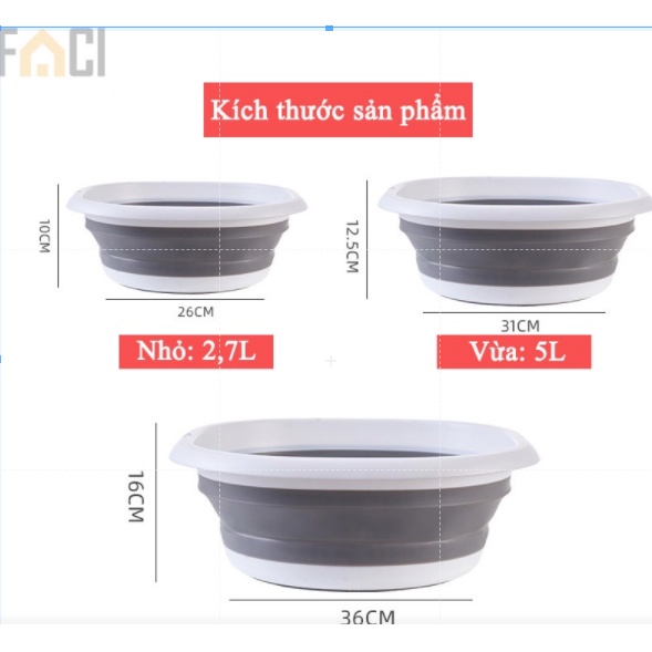 Chậu gấp gọn silicon tiết kiệm không gian thông minh thau rửa tay rửa mặt giặt đồ làm chậu tắm cho bé gia dụng tiện ích