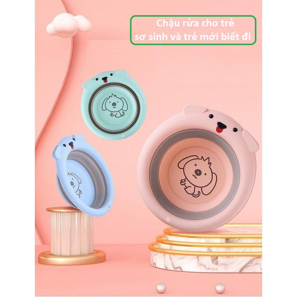 THÔNG TIN SẢN PHẨM: Chậu rửa mặt gấp gọn cho bé hình lợn và chó cao cấp ngộ nghĩnh an toàn- Kích thước 38 x 33 x 10.5cm.