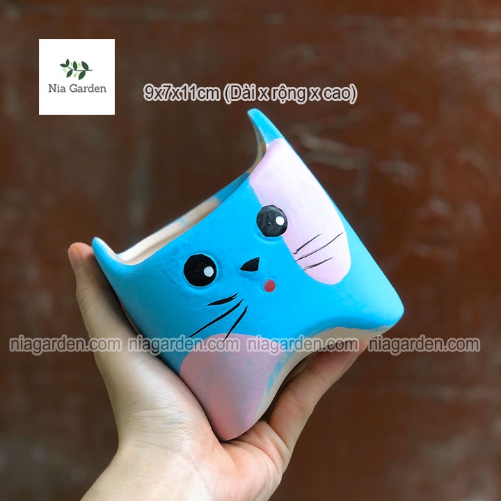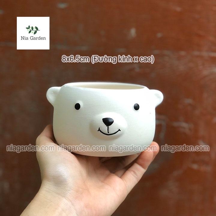 Chậu gấu trúc mèo đất nung trồng cây để bàn sen đá xương rồng mini Nia Garden N4
