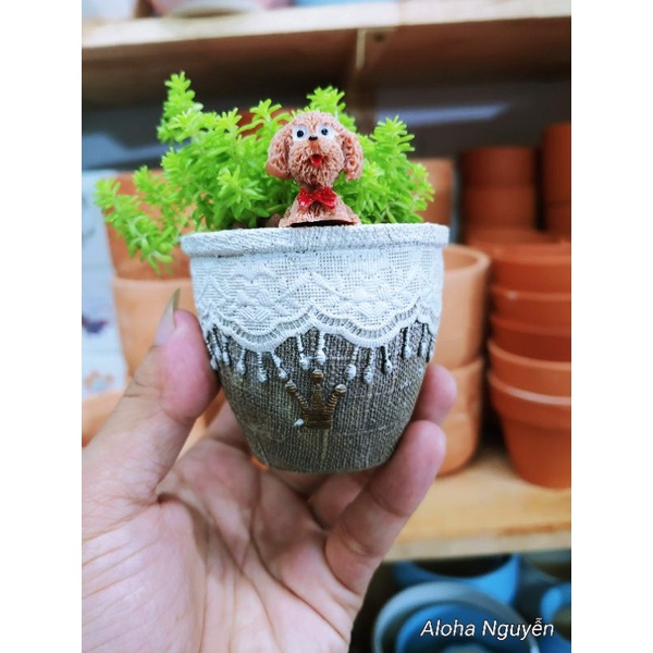 Chậu giỏ ren dùng trồng sen đá .cây mini xương rồng cây may mắn.