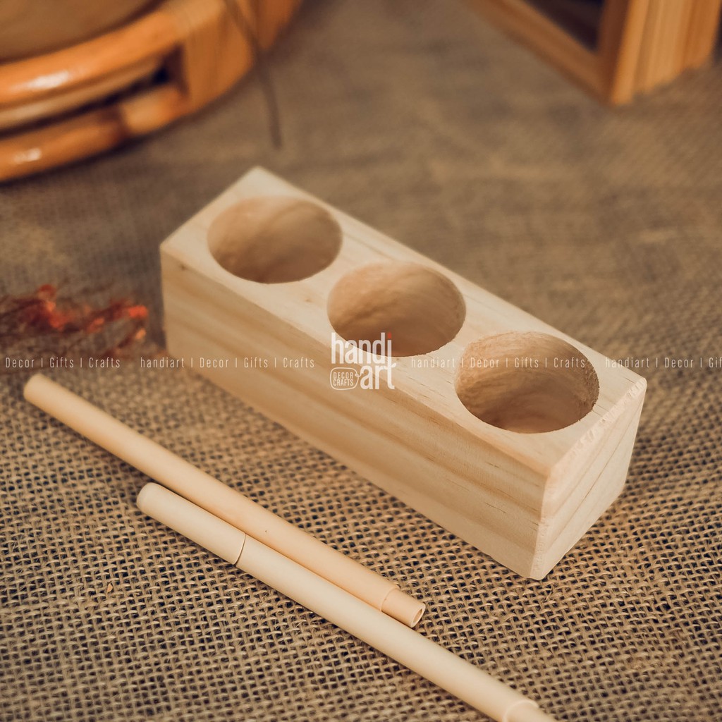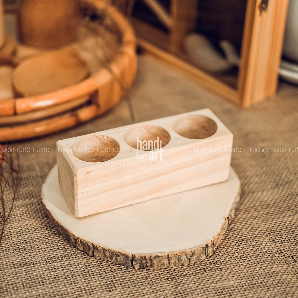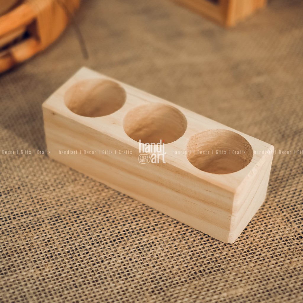 Chậu gỗ 3 lỗ để bàn - trồng cây sen đá - chậu gỗ trang trí [16.5x5cm]