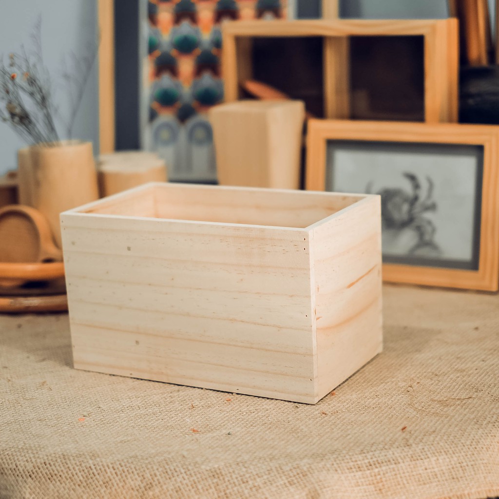 Chậu gỗ cắm hoa hình chữ nhật - wooden potsĐược làm từ gỗ thông nhập có vân gỗ tự nhiên mộc mạc xinh xắn