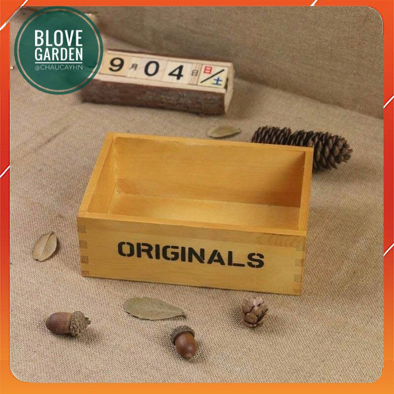 Chậu gỗ hình chữ nhật 𝙊𝙍𝙄𝙂𝙄𝙉𝘼𝙇𝙎 trồng cây cảnh, cây cảnh nội thất, tiểu cảnh sen đá, xương rồng, cây cảnh để bàn