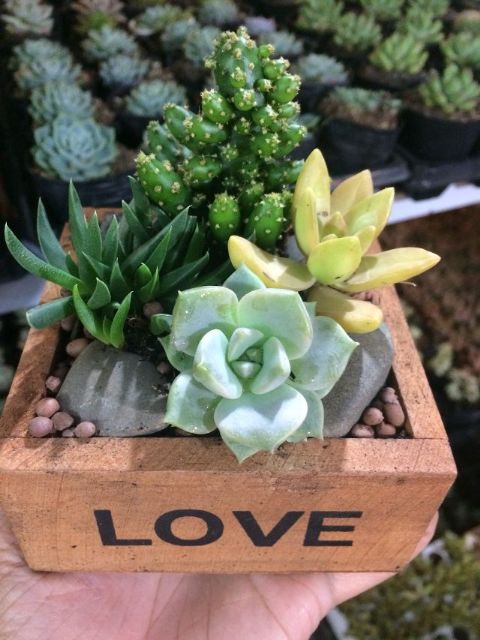 Giới thiệu Chậu gỗ love trồng sen đá