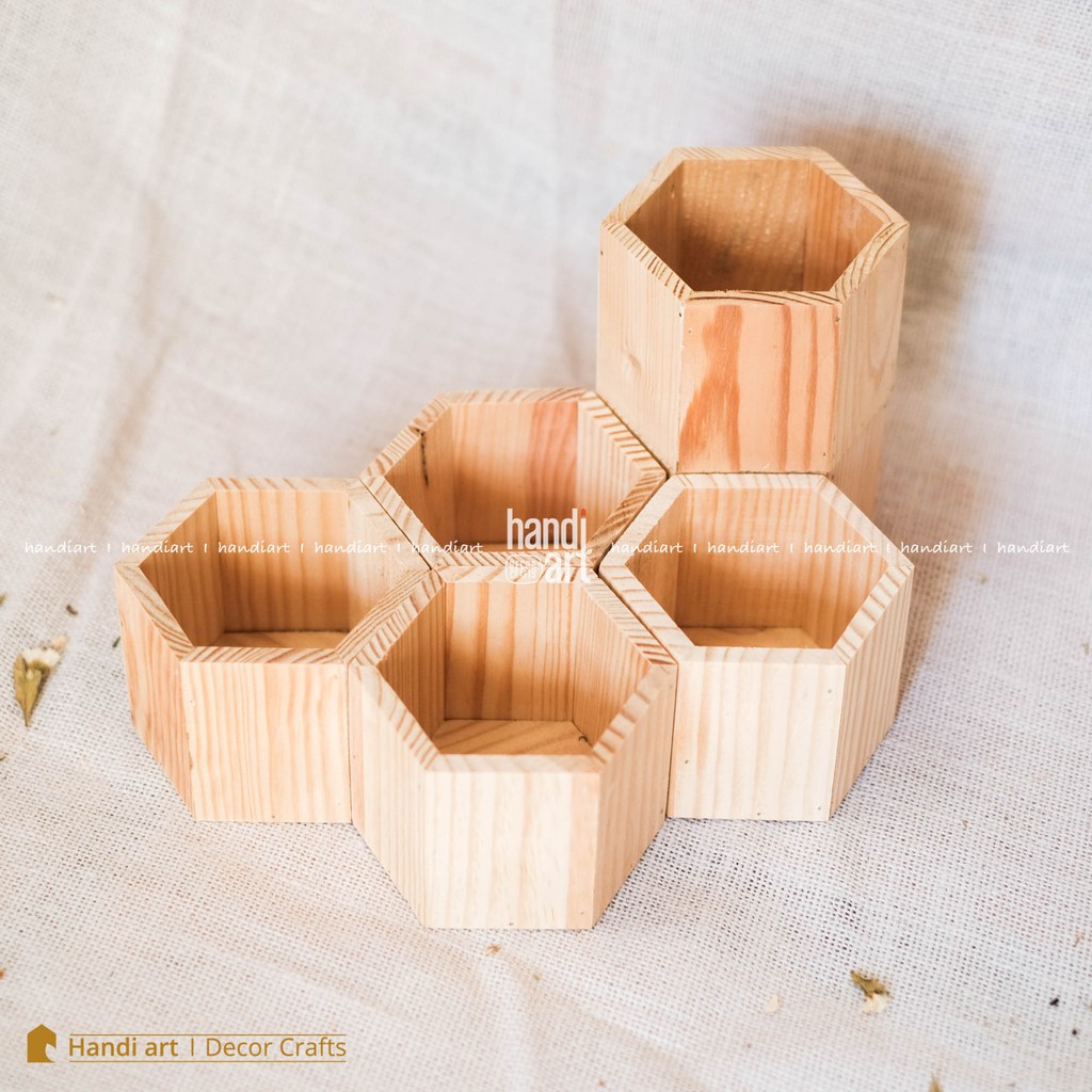 Chậu gỗ lục giác, chậu gỗ cắm hoa - wooden pots