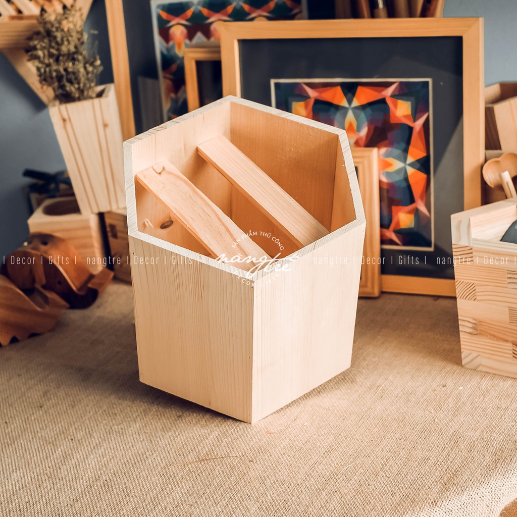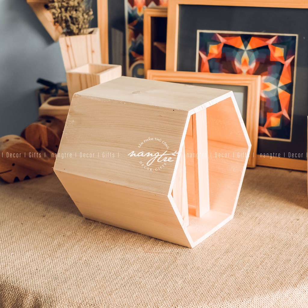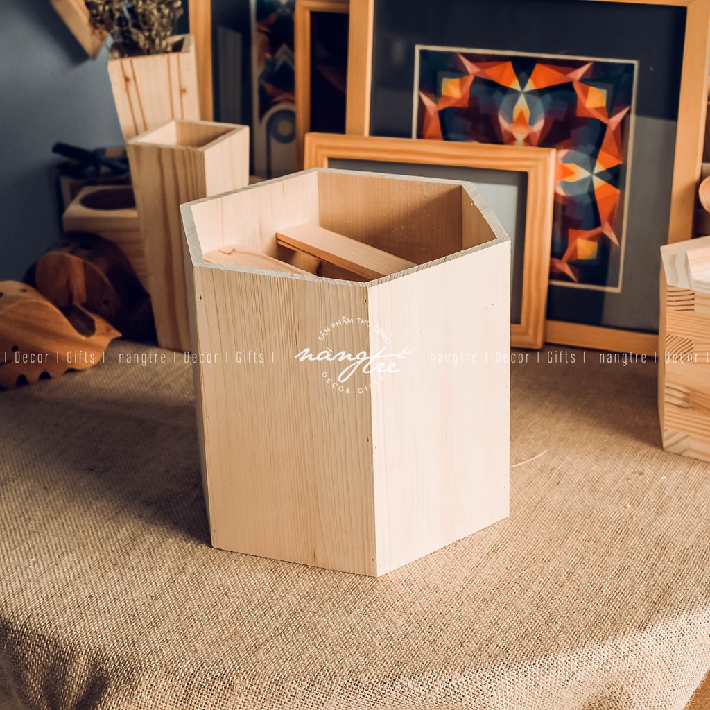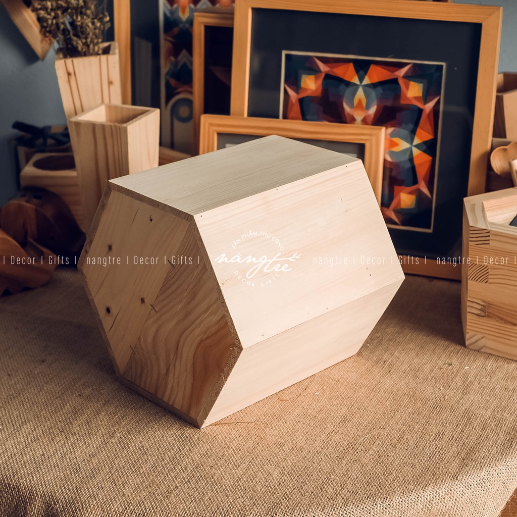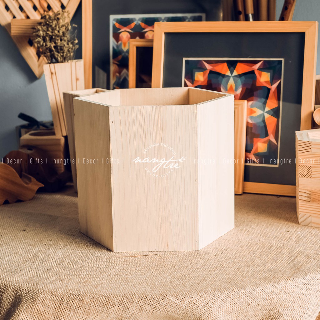 Chậu gỗ lục giác trồng cây - chậu gỗ trang trí