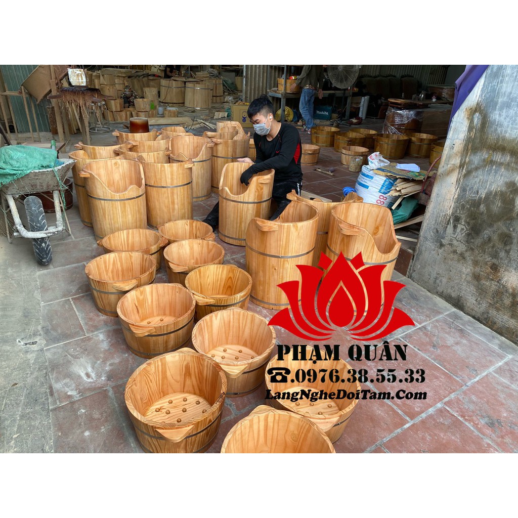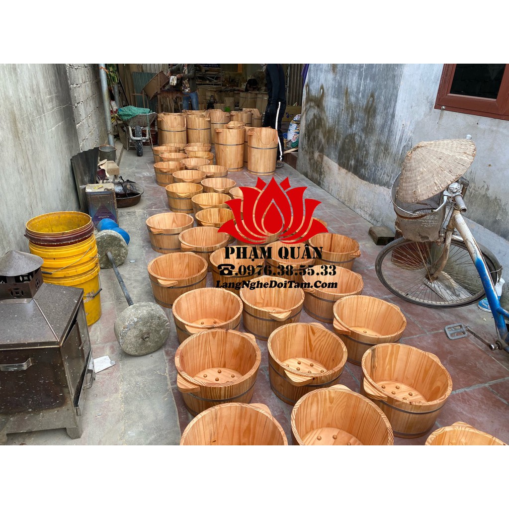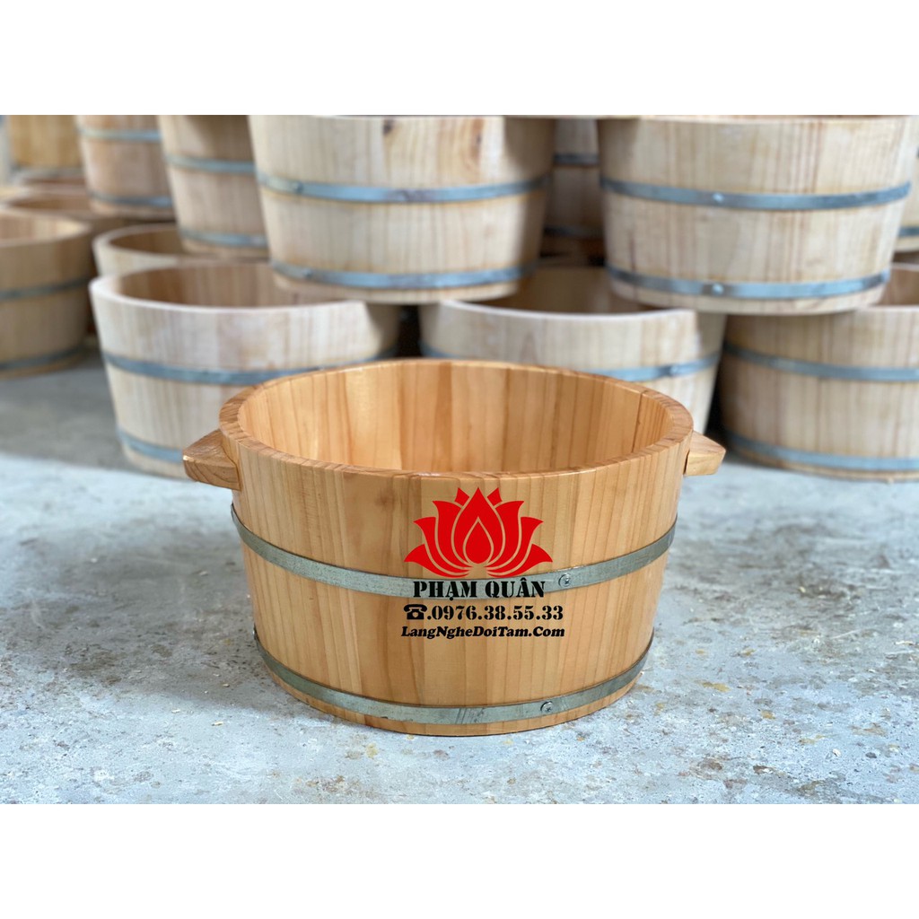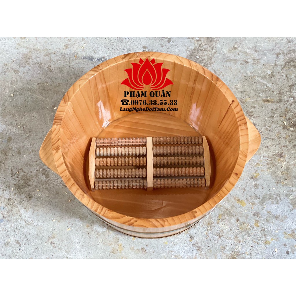 Chậu gỗ ngâm chân gỗ thông, chậu ngâm chân trơn tặng kèm bàn lăn