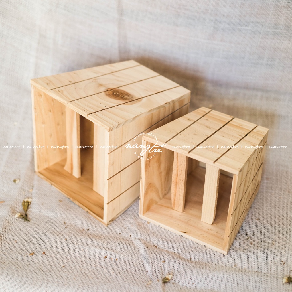 Chậu gỗ sọc caro trang trí hoa - Wooden flower potĐược làm từ gỗ thông nhập có vân gỗ tự nhiên phong cách gỗ mộc mạc