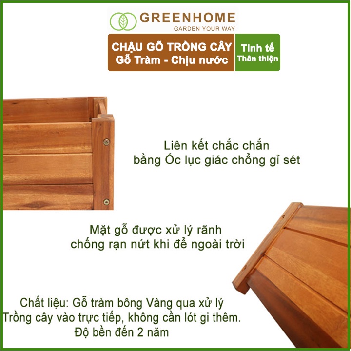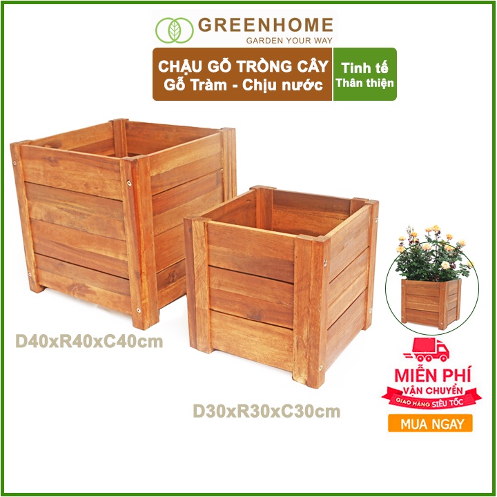 Nhà cửa & Đời sống > Làm vườn > Chậu cây || Chậu gỗ trồng cây, hình vuông, D30xR30xC30cm, gỗ Tràm chịu nước, tặng 1 hộp dưỡng hoa tươi lâu |GreenhomeCòn hàng