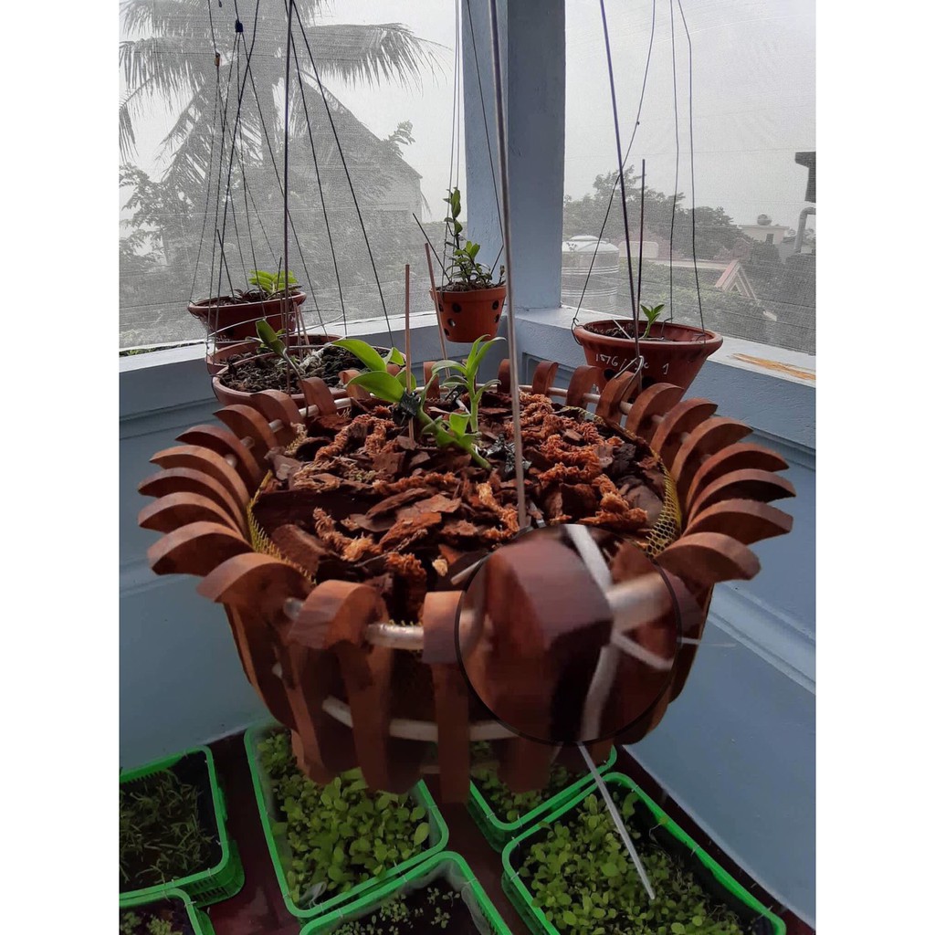 * Chậu gỗ trồng lan có đường kính lọt lòng (phần chứa giá thể trồng cây) rộng 35cm