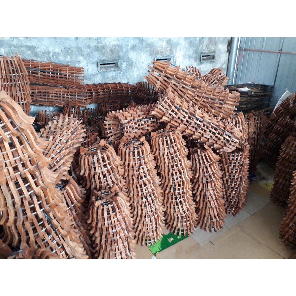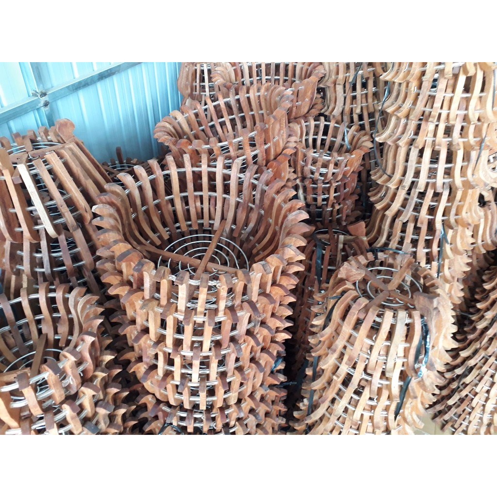 - Các nan gỗ được liên kết với nhau bởi 3 vòng thép kẽm có bọc ống tio trắng cho nét tinh tế, tránh rễ lan bám.