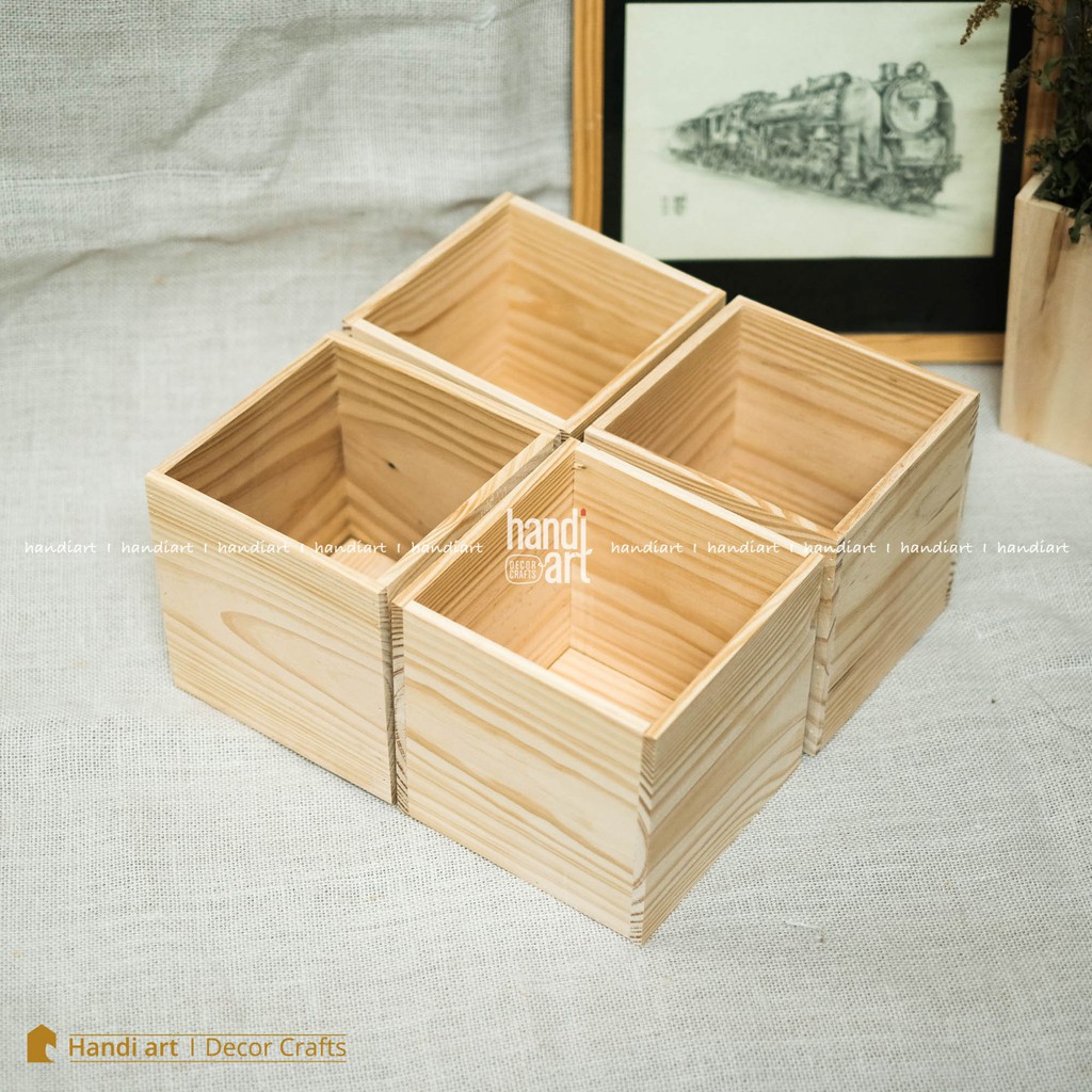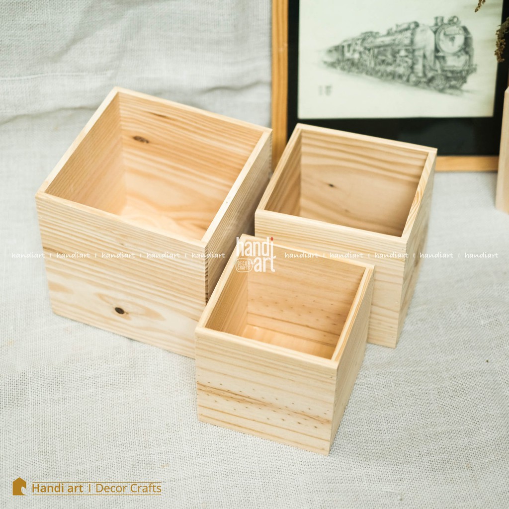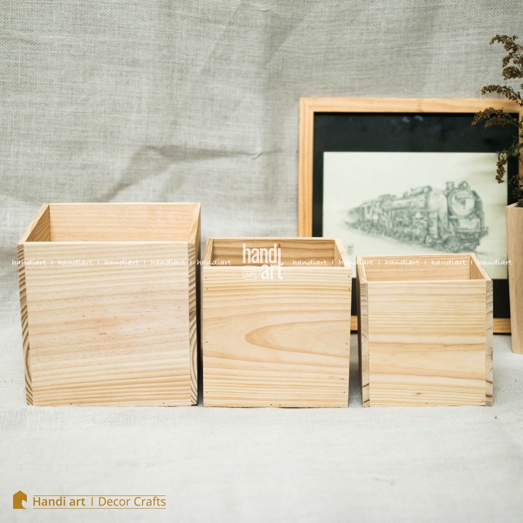 Chậu gỗ vuông-Hộp gỗ vuông decor - wooden pots- Được làm từ gỗ thông nhập có vân gỗ tự nhiên mộc mạc xinh xắn