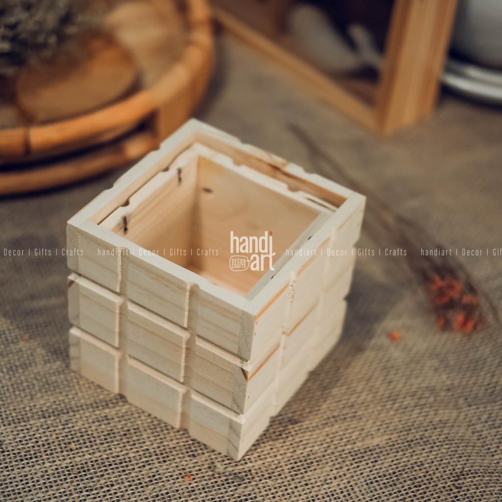 Chậu gỗ để bàn trang tríĐược làm từ gỗ thông nhập có vân gỗ tự nhiên mộc mạc xinh xắn