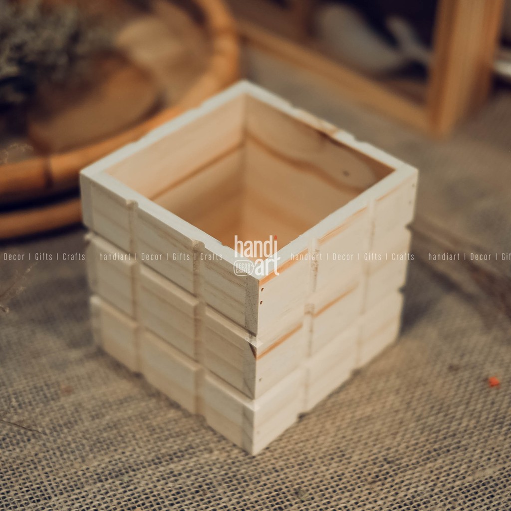 Chậu gỗ vuông trồng cây, chậu gỗ để bàn trang trí - Chậu gỗ tự nhiên
